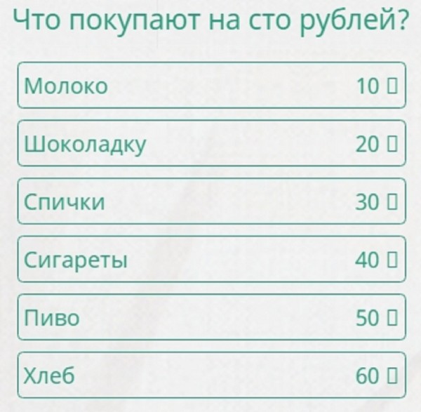 На вопрос про то, что покупают на сто рублей, только данные варианты ответов будут считаться правильными и помогут заработать игровые рубли: